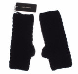 Gorgeous brand new with tags, 100% Authentic Dolce & Gabbana black knitted wool and leather Mens Fingerless Gloves. Logo details. Made in Italy.