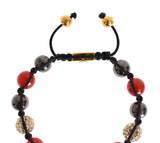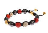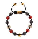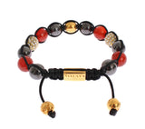 White CZ Diamonds, Hematite, Carnelian, Gold Bead Hollow