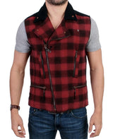Absolutely stunning, 100% Authentic, brand new with tags Costume National C’N’C red and black checkered biker style vest jacket