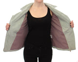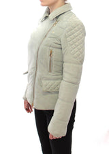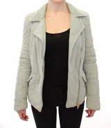 Gorgeous brand new, 100% Authentic Versace Collection Jacket. Lightgreen suede jacket in a classic biker style. Featuring long sleeves, gold toned metal details with logo engravings, two flap pockets and two zip pockets. Perfect for everyday use.