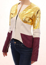 Gorgeous brand new with tags, 100% Authentic VLADIMIRO GIOIA white, gold metallic and purple sheep and goat leather jacket. Very exclusive and very rare to find Vladimiro Gioia at outlet prices.