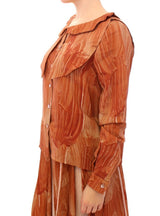 Orange Long Sleeve Button Front Blouse Shirt