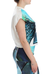 Multicolor 100% Silk Crop Top Blouse T-shirt