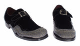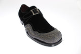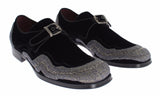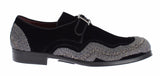 Gorgeous brand new with tags, 100% Authentic Dolce & Gabbana black velvet with gray sequined baroque dress buckle strap shoes. This item comes from the exclusive black label MainLine Dolce & Gabbana collection.
