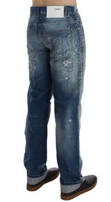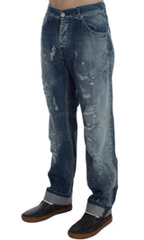 Blue Wash Torn Denim Cotton Regular Fit Jeans