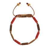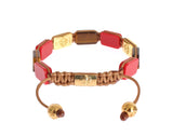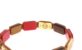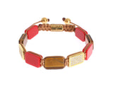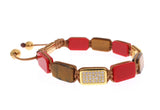 White CZ Diamonds, Red Coral, Brown Tiger Eye Flatbeads