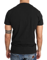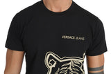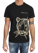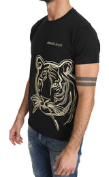 Black Cotton Gold Tiger Motive Crewneck T-shirt