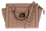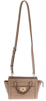 Two handles & 125 cm adjustable Removable long strap. Gold tone hardware.
