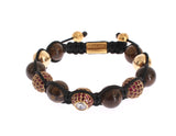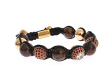 Stone/Bead: Gold Bead Hollow, Bronzite, Red CZ 14 Kt. Gold Plated Base,