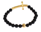 Stone/Bead: Matte Onyx beads, CZ Diamond cross