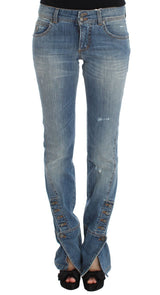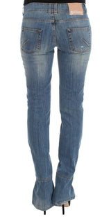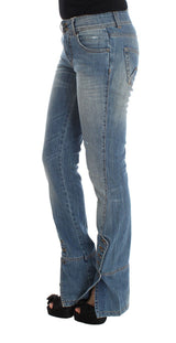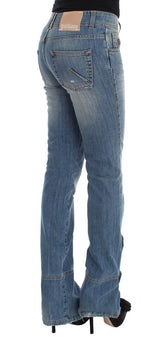 Blue Wash Cotton Blend Slim Fit Bootcut Jeans