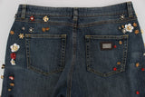 Gorgeous brand new with tags, 100% Authentic Dolce & Gabbana blue wash crystal heart Roses embellished enchanted Sicily boyfriend fit jeans. This item comes from the exclusive MainLine Dolce & Gabbana Collection.