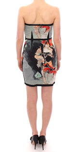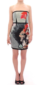 Multicolor Strapless Silk Floral Bubble Mini Shift Dress
