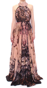 Gorgeous brand new with tags, 100% Authentic SERGEI GRINKO Multicolor motive print pashmina cashmere and silk blend full length maxi dress.