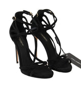 Gorgeous brand new with tags 100% Authentic Dolce & Gabbana black suede stiletto sandals shoes .