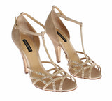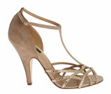 Gold Beige Suede Crystal Mary Janes Heels Party Shoes with T Ankle Strap