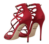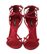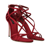 Red Silk Stiletto Heels Sandals