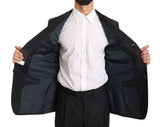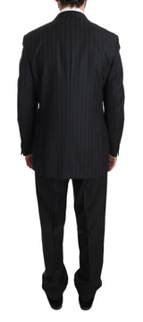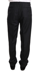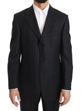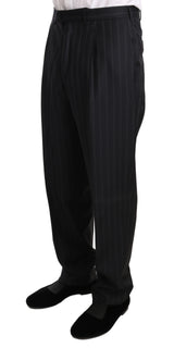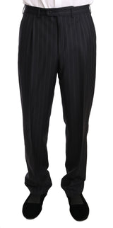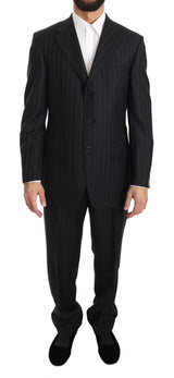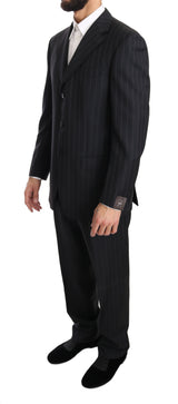 Dark Gray Two Piece 3 Button Wool Striped Suit