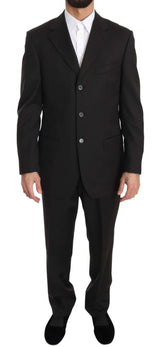 Gray Solid Two Piece 3 Button Wool Suit