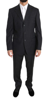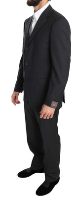Solid Dark Gray Two Piece 3 Button Wool Suit