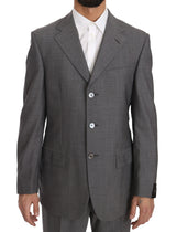 Solid Gray Two Piece 3 Button Wool Suit