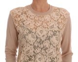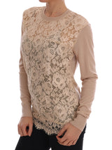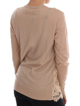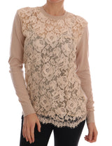 Beige Cashmere Lace Pullover Sweater
