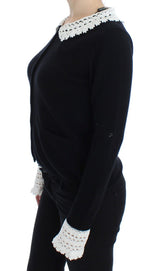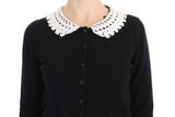 Gorgeous brand new with tags, 100% Authentic DOLCE & GABBANA black wool with white floral Ricamo cardigan sweater. This item comes from the exclusive MainLine Dolce & Gabbana Collection.