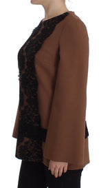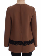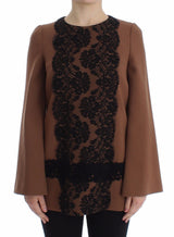 Gorgeous brand new with tags, 100% Authentic DOLCE & GABBANA brown wool and black lace oversize sleeves crewneck sweater. This item comes from the exclusive MainLine Dolce & Gabbana Collection.