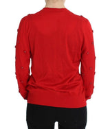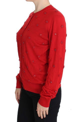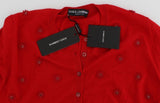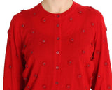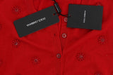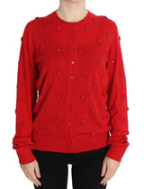 Gorgeous brand new with tags, 100% Authentic DOLCE & GABBANA red silk and cashmere crystal floral applique cardigan sweater.