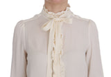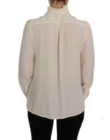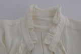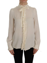 Gorgeous brand new with tags, 100% Authentic DOLCE & GABBANA beige silk stretch long sleeve ruffled shirt blouse.