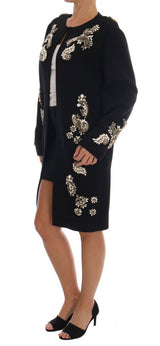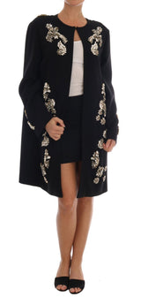 Gorgeous brand new with tags, 100% Authentic Dolce & Gabbana black wool stretch crystal embellished cape coat jacket.