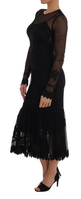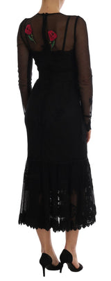 Gorgeous brand new with tags, 100% Authentic Dolce & Gabbana black long-sleeved lace dress with rose application.