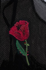 Red rose embroidery on the backside