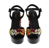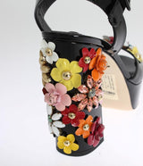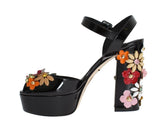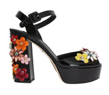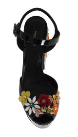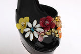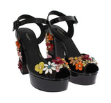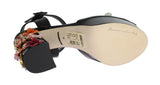 Black Leather Crystal Sandals