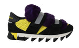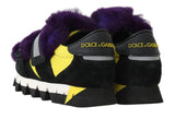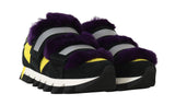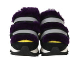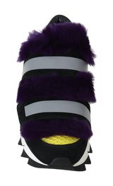 Black Leather Purple Fur Sneakers