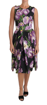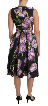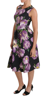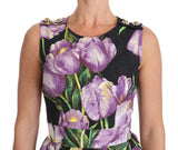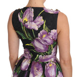 Gorgeous brand new with tags, 100% Authentic Dolce & Gabbana black with purple tulips print brocade A-line shift dress.