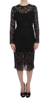 Gorgeous brand new with tags, 100% Authentic Dolce & Gabbana black floral Ricamo long sleeve sheath dress.