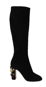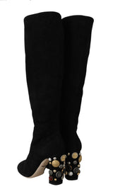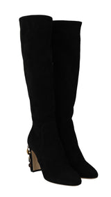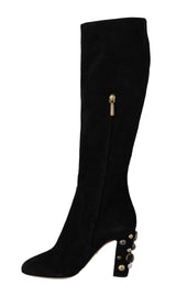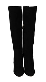 Black Suede High Knee Boots
