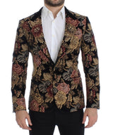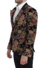 Absolutely stunning, 100% Authentic, brand new with tags Dolce & Gabbana black velvet with floral brocade detailing two button slim fit Blazer Jacket. This item comes from the exclusive MainLine Dolce & Gabbana collection.