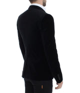Absolutely stunning, 100% Authentic, brand new with tags Dolce & Gabbana black velvet stretch two button slim fit Blazer Jacket. This item comes from the exclusive MainLine Dolce & Gabbana collection.