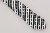 Black White Striped Silk Slim Tie