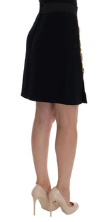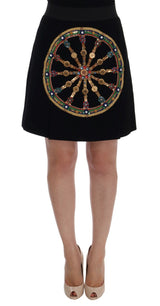 Gorgeous brand new with tags, 100% Authentic Dolce & Gabbana black wool A-Line Carretto crystal and sequined embroidered skirt.