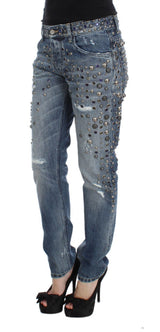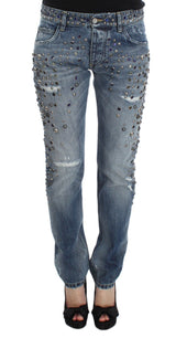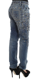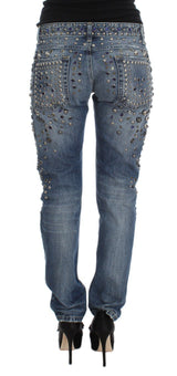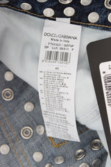 Gorgeous brand new with tags, 100% Authentic Dolce & Gabbana blue wash crystal studded embellished jeans. This item comes from the exclusive MainLine Dolce & Gabbana Collection.