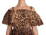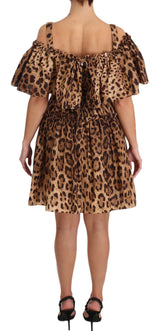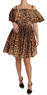 Brown Leopard Cotton A-Line Dress