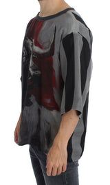 Absolutely stunning, 100% Authentic, brand new with tags Dolce & Gabbana gray Bull Torero print silk shortsleeve crewneck t-shirt.