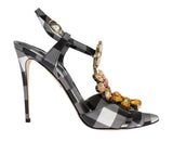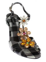 Gorgeous, brand new with tags, 100% Authentic Dolce & Gabbana checkered patent leather crystal ankle strap stilettos sandals shoes. This items comes from the exclusive MainLine Dolce & Gabbana collection.