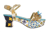 Multicolor handpainted Majolica platform heel