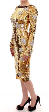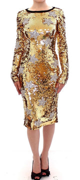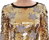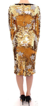 Gorgeous brand new with tags, 100% Authentic DOLCE & GABBANA Masterpiece gold sequined clear crystal swarovski stars sheath dress. This item comes from the exclusive MainLine Dolce & Gabbana Collection.