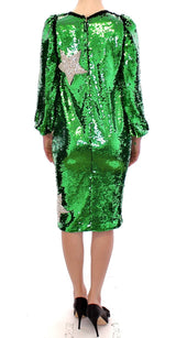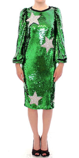 Gorgeous brand new with tags, 100% Authentic DOLCE & GABBANA Masterpiece green sequined clear crystal swarovski stars sheath dress. This item comes from the exclusive MainLine Dolce & Gabbana Collection. SPECIAL PIECE, one of a kind.