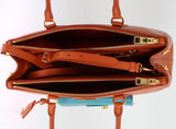Handles: Double rolled leather top handles and a removable, adjustable long leather strap